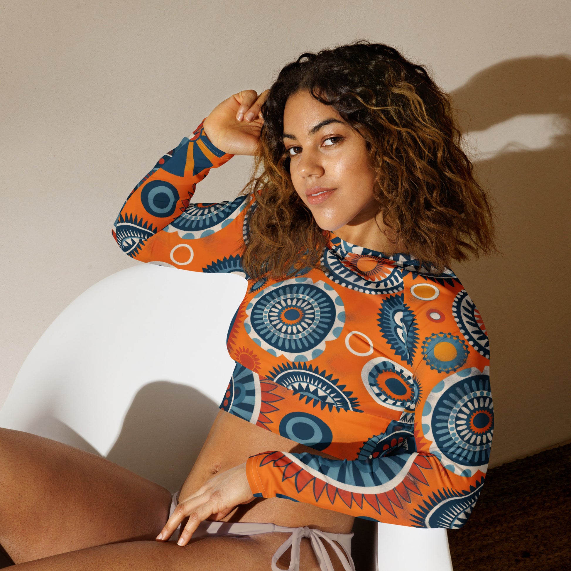 African Print long-sleeve crop top